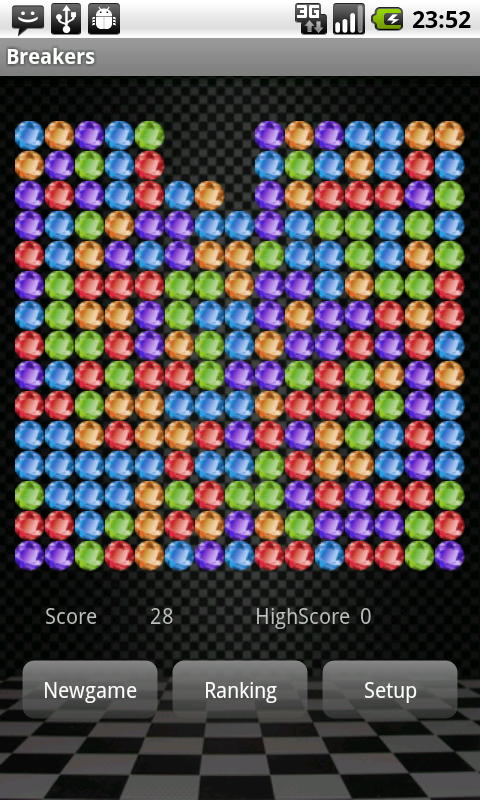 balls in same color are positioned adjacent, they are eligible to be eliminated by clicking any of them. Greater removal at a time, bigger score.